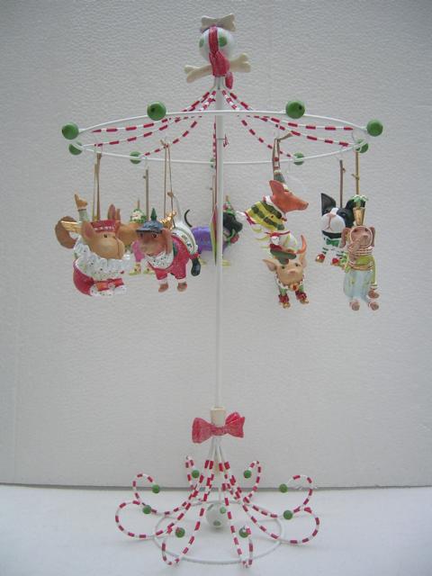 Krinkles Hunde Karussell Figurenständer mit Knochen für Krinkles Hunde oder andere Krinkles Figuren bis 14 cm aus Resin und Metall Höhe 44 cm. Durchmesser 26 cm