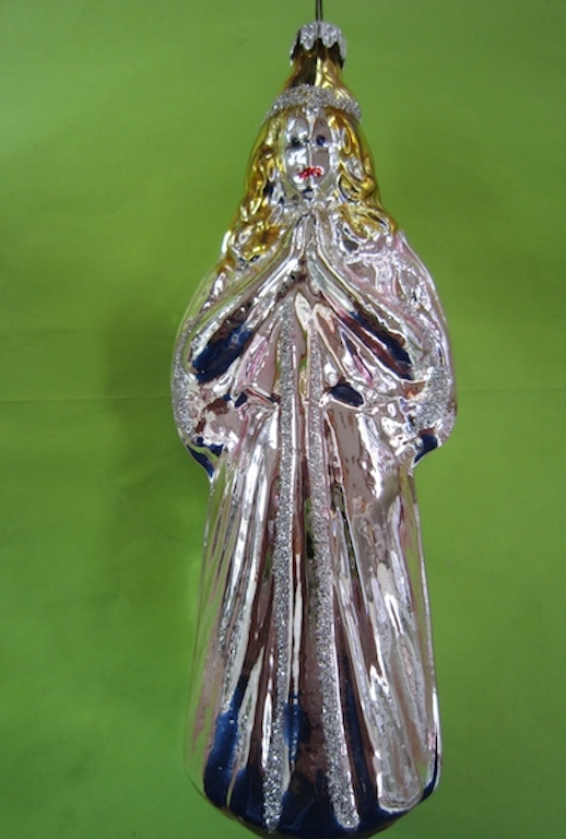 Christbaumschmuck betender Engel silber mit goldenen Haar 17 cm aus Glas mit Aufhängevorrichtung oben