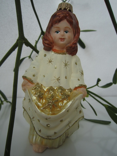 Christbaumschmuck Lauscha Thüringen Märchenfigur Sterntaler aus Glas zum Hängen aufwändig bemalt.