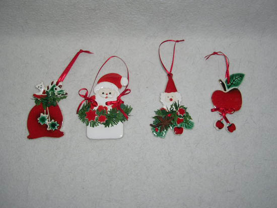 Dänische Weihnachtskeramik Schneemann, Sack, Apfel, Nikolaus rot