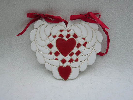 Herz aus Keramik mit rotem Herz in der Mitte. Handarbeit aus Dänemark. Als Türschmuck zu verwenden.