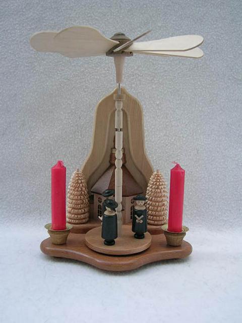 Windrad "Sternensänger vor Kirche" aus Holz, original deutsche Handarbeit, Höhe: 21 cm