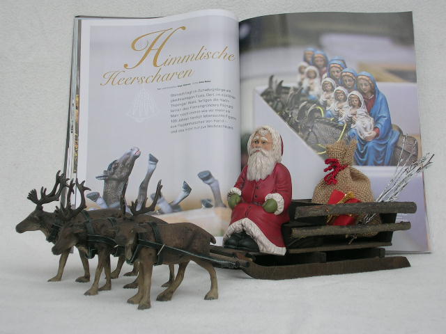 Im Hintergrund das Magazin Country 11/12 2008 mit seinem Artikel über die Herstellerfirma, die diese wunderschönen Arbeiten seit 1900 anfertigt.