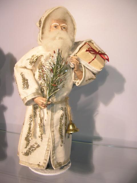 Papiermache Weihnachtsmann Nostalgie Stoffmantel+Glitter altweis